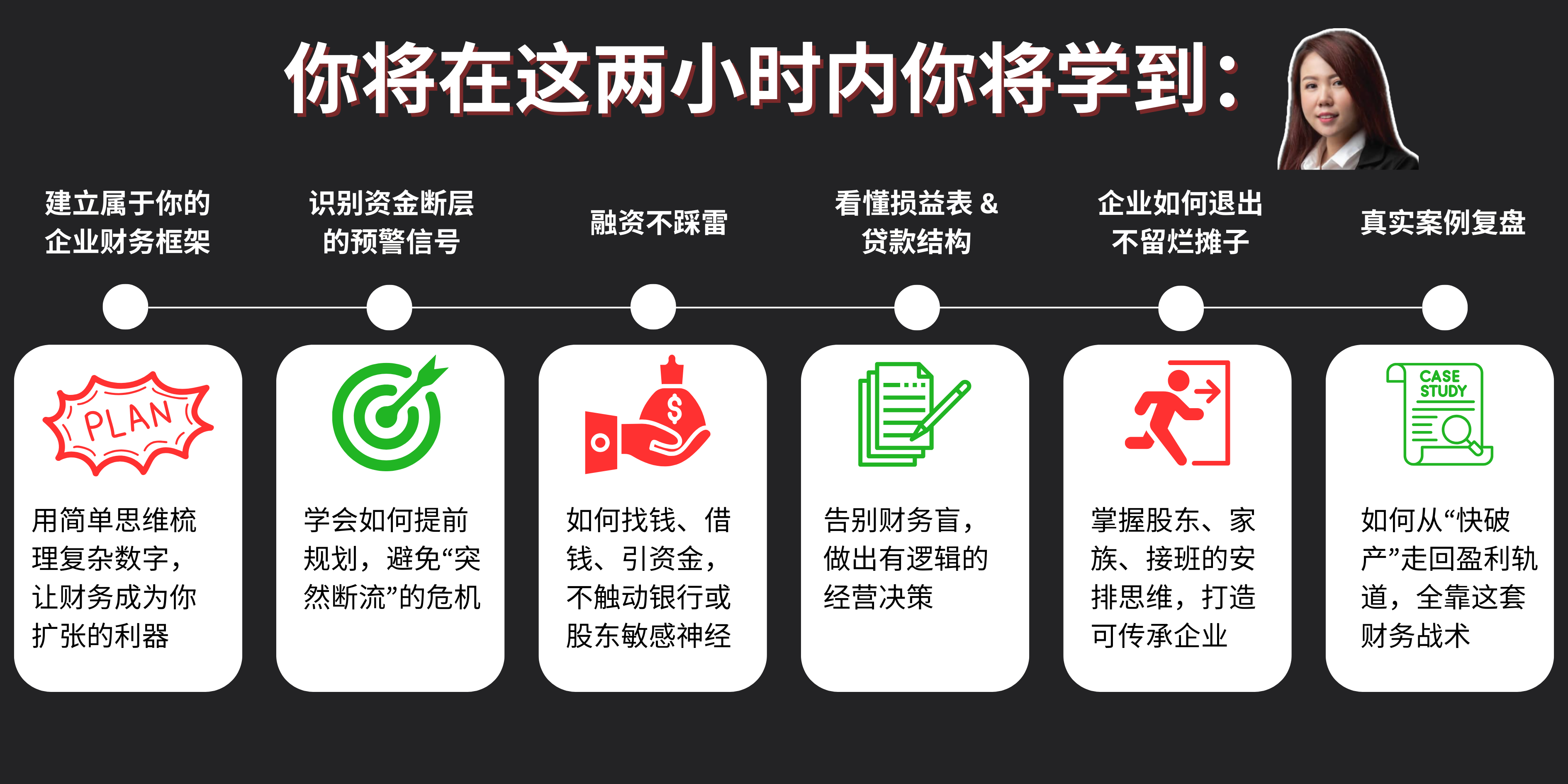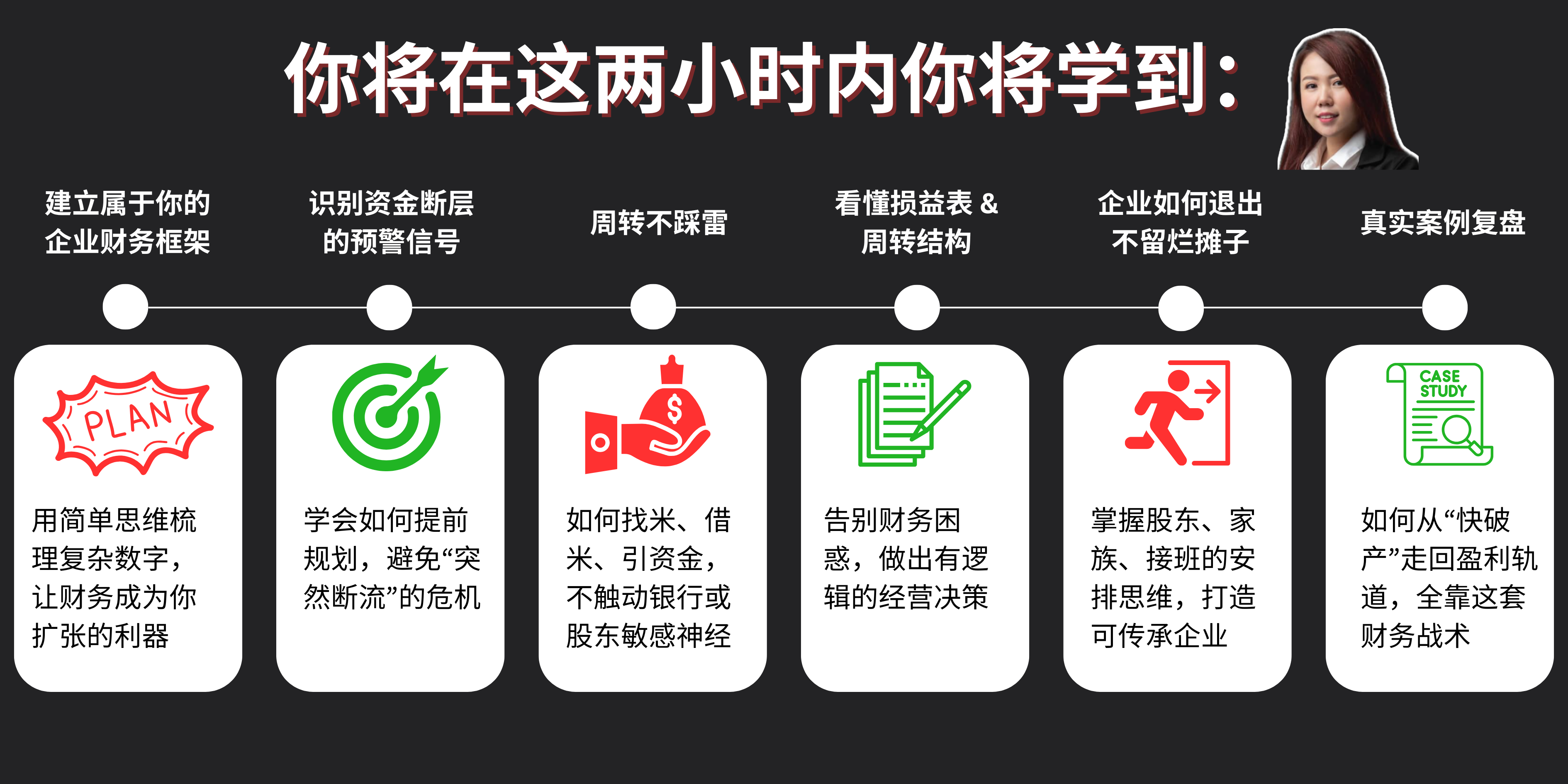 在这场分享会让你了解到如何为自己的企业设计一套可持续发展的财务蓝图…