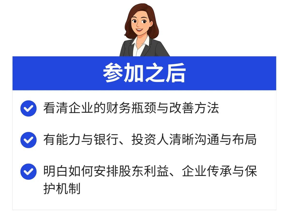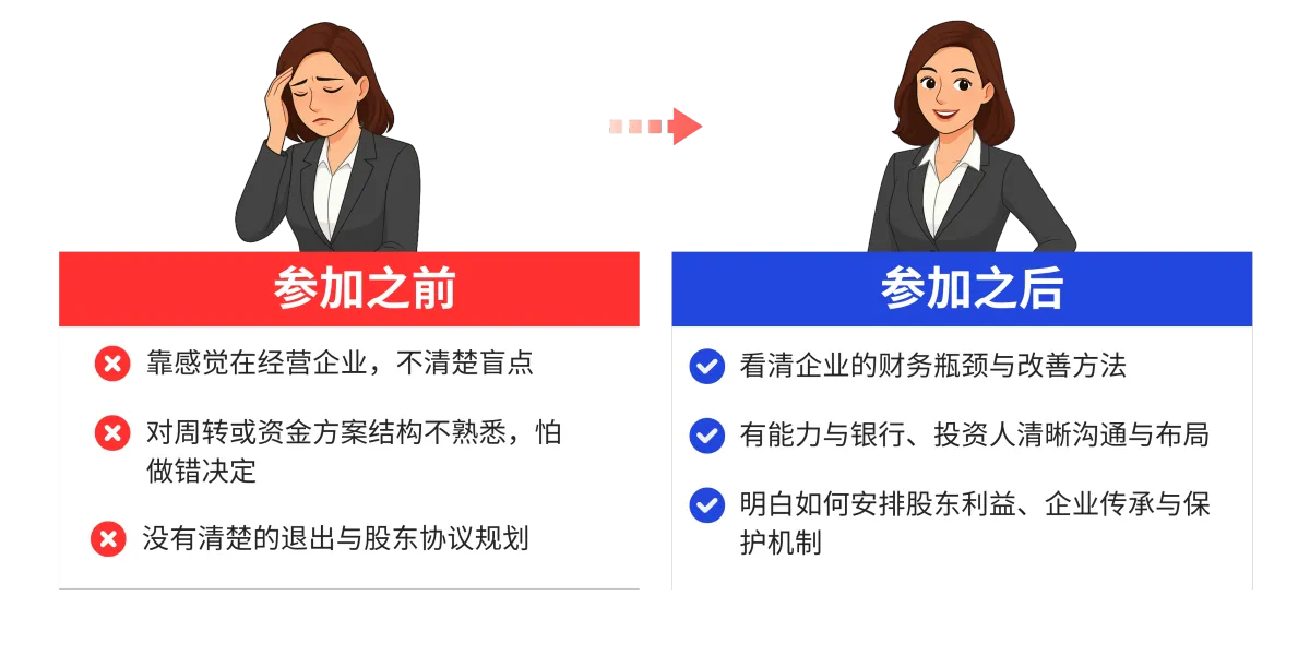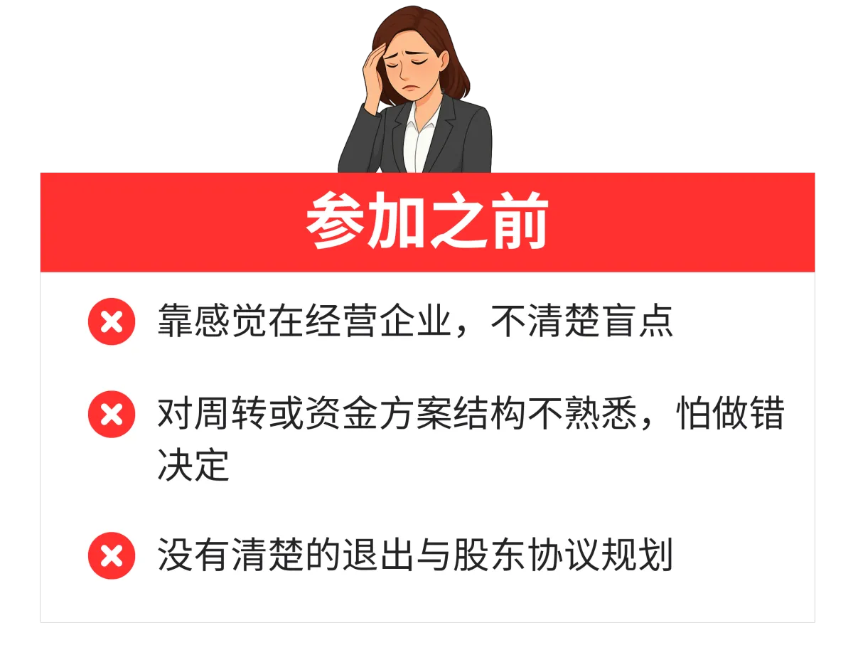 我的课程内容,是专为那些真正渴望解决企业资金困局、实现稳健增长的您,量身定制的。